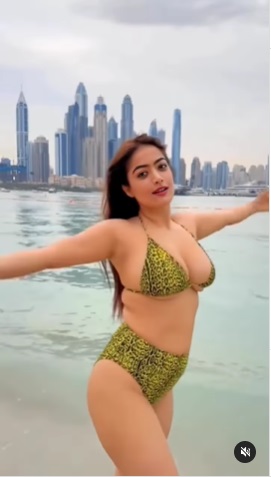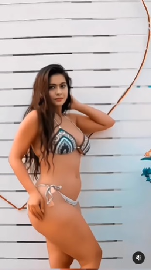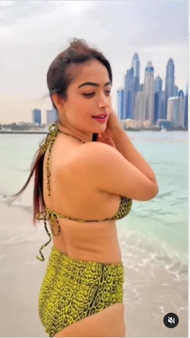 Videos of actors Kajol and Rashmika Mandanna posing in bikinis.