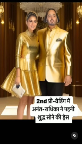 Anant Ambani and Radhika Merchant wear clothes made of pure gold during their pre-wedding cruise party in Europe.