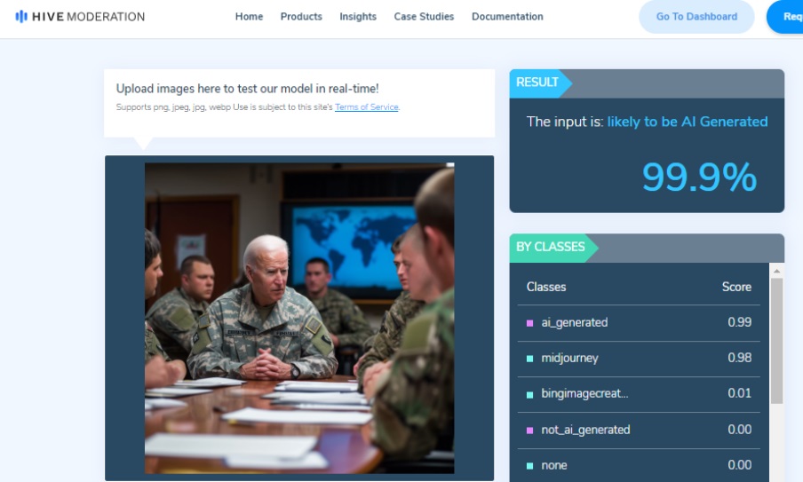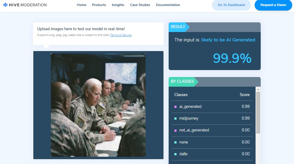 Hive Moderator, AI-generated content detection tool