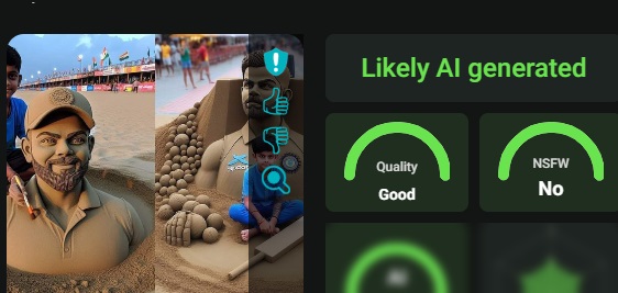 Newschecker noticed the unnaturally smooth texture of the purported sand sculpture, a telltale sign associated with AI-generated images, which raised our doubts. We also did not find any credible news reports of such an artwork created recently.