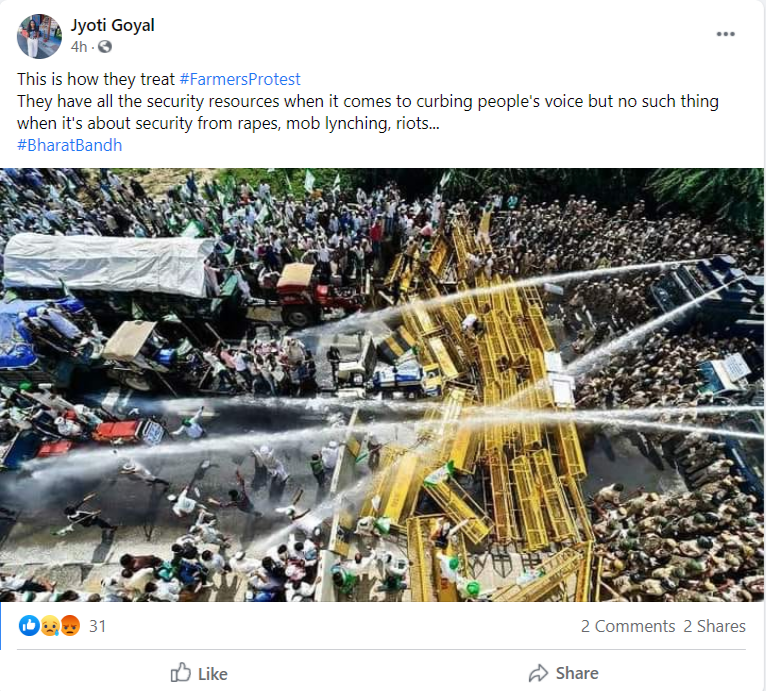 কেন্দ্র সরকারের শ্রম, কৃষি ও আরো অন্যান্য নীতির বিরুদ্ধে বামেদের সাধারণ ধর্মঘটের ছবির সাথে ছড়ালো ২০১৮ সালের কিষান ক্রান্তি পদযাত্রার ছবি। পুলিশের ব্যারিকেড সরিয়ে এগিয়ে যাওয়ার যে ছবিটি আজ সাধারণ ধর্মঘটের দিন ভাইরাল হয়েছে আসলে তা ২০১৮ সালে দিল্লী ও উত্তর প্রদেশের বর্ডারের কাছে কৃষক ও পুলিশের মধ্যে বচসার ছবি। জমি ঋণ, ক্রমশ ঊর্ধ্বগতিতে ধাবমান জ্বালানির দাম এবং আরো কিছু দাবি দাওয়া নিয়ে ২৩শে সেপ্টেম্বর থেকে শুরু হয় কৃষকদের এই আন্দোলন। ২রা অক্টোবর দিল্লী ও উত্তরপ্রদেশের সীমান্তে শুরু হয় ধর্মঘটী সাথে পুলিশের খন্ড যুদ্ধ। ক্ষিপ্ত জনতাকে সামলানোর জন্য পুলিশ কাঁদানে গ্যাস ও জল কামানের ব্যবহার করে।