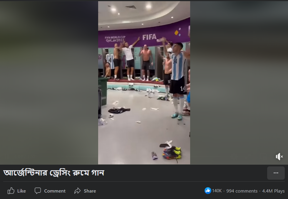 আর্জেন্টিনার ড্রেসিং রুমে ‘সাদা সাদা কালা কালা’ গানে সবাই নেচেছে? বিশ্বকাপের আবহে ফেসবুকে ছড়ালো সম্পাদিত ভিডিও