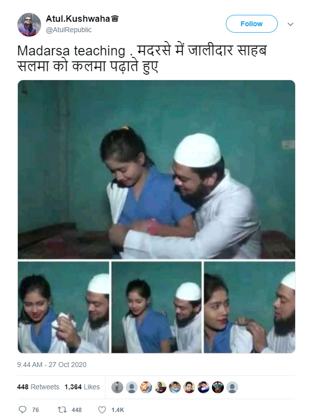 কিছুদিন ধরে সোশ্যাল মিডিয়াতে একটি ছবি ভাইরাল হয়েছে, যেখানে দাঁড়ি ও ফেজটুপি পড়া একটি ব্যক্তির কোলে স্কুলের পোশাক পরিহিতা একটি মেয়েকে আপত্তিজনক ভাবে বসে থাকতে দেখা যাচ্ছে। ছবিতে ব্যক্তিকে যে বেশভুষায় দেখা যাচ্ছে, আমরা সাধারণত মৌলবী বা মাদ্রাসার শিক্ষকদের এই ধরণের পোশাক পড়তে দেখি। একটি ফ্রেমে চারটি ছবিতে কোথাও ওনার হাত মেয়েটির বুকের কাছে অথবা কোথাও মেয়েটির ওড়নার উপর দেখা যাচ্ছে। সোশ্যাল মিডিয়াতে দাবি করা হয়েছে মাদ্রাসার শিক্ষক এই ভাবে ছাত্রীদের শিক্ষাদান করে।