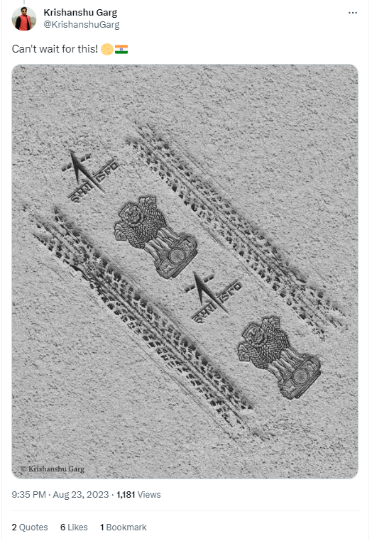 Everyone has been excited about Chandrayaan-3 this time. People had made artwork of VL already landed on moon to wish ISRO All the Best. I thought out of the box and made an edit of the imprints that Pragyan Rover will leave behind as confirmed by ISRO and used it just as a countdown for Landing and A tweet with “Can’t wait for this”.