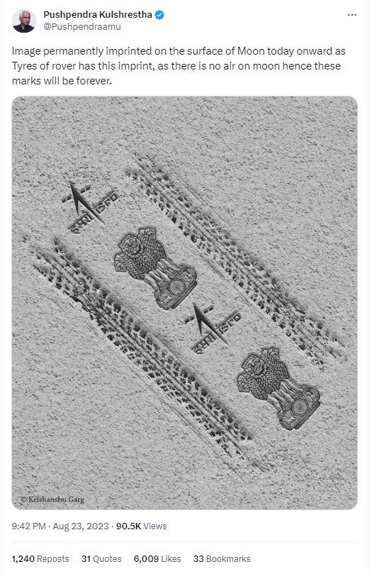 এমন প্রেক্ষাপটে ওই ছবি ভাইরাল হয়েছে। ফেসবুকে একটি ক্যাপশনে লেখা ছিল, ‘আমরা ভারতীয় আমরা পতাকায় চাঁদ দেখি না! আমরা চাঁদে অশোক স্তম্ভ দেখি আমরা ভারতীয়’। এক্স ব্যবহারকারীদের অনেকেই এমনই বিভ্রান্তিকর দাবি-সহ ওই ছবিটি শেয়ার করতে থাকেন।