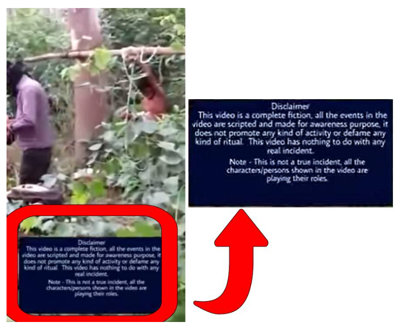 সেই ভিডিয়োটির ৩০ সেকেন্ডে সময়ে হিন্দি ও ইংরেজি ভাষায় একটি বিধিবদ্ধ সতর্কীকরণ দেখতে পাওয়া যায়। যেখানে স্পষ্ট ভাবে লেখা ছিল যে ভিডিয়োতে দেখানো ঘটনাটি সত্য়ি নয়।
