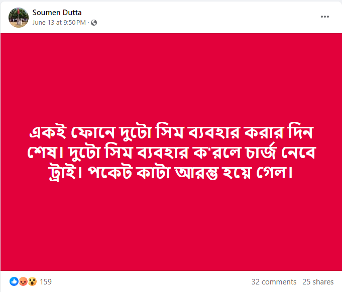 Claim: এবার একটি ফোনে দুটো সিম ব্যবহার করলে অতিরিক্ত টাকা নেবে ট্রাই।