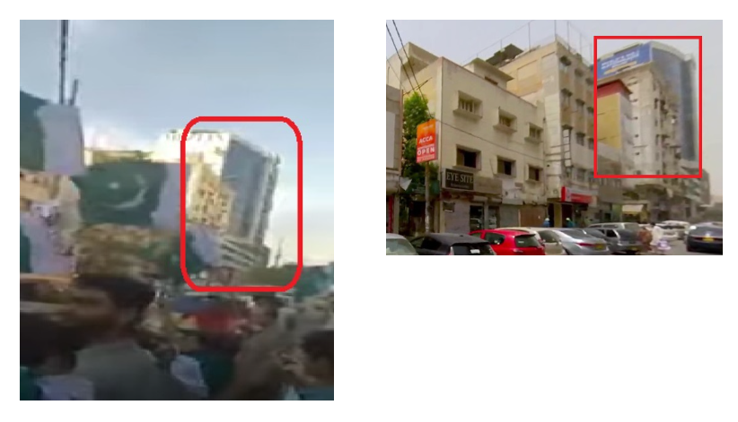 ওই ভিডিয়োতে Sanam Boutique নামের একটি দোকানও দেখতে পাওয়া যায়। সেই সূত্র ধরে ইন্টারনেটে “Sanam Boutique Karachi” লিখে সার্চ করি এবং দোকানটি খুঁজেও পাই। এরপর Google Map-তে দেখতে পাওয়া ছবির সঙ্গে ভাইরাল ভিডিয়োর ছবির তুলনা করলে স্পষ্ট হয়ে যায় যে দুটো দোকান একই।