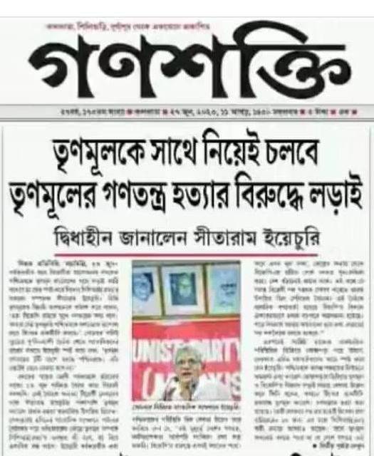 সীতারাম ইয়েচুরি তৃণমূলকে সাথে নিয়েই রাজ্যের গণতান্ত্রিক অধিকারের বিরুদ্ধে লড়বে বলে জানিয়েছেন এবং এই খবরটি প্রকাশিত হয়েছে গণশক্তি খবরের কাগজে।