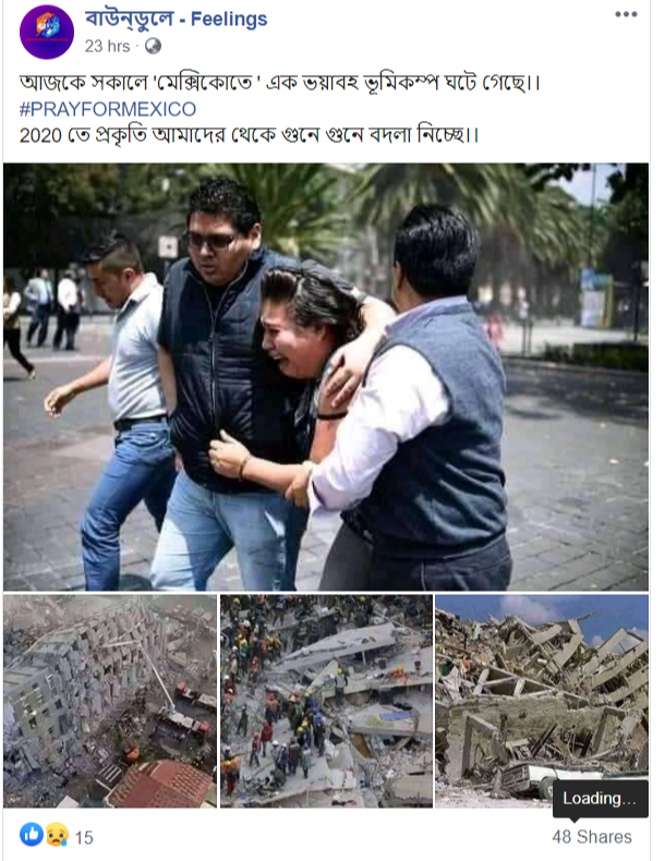 ফেসবুকে মেক্সিকোর ভূমিকপের নাম দিয়ে যে ছবি গুলি ছড়ানো হয়েছে তার মধ্যে অনেক ছবিই এই ঘটনার সাথে সম্পর্কিত নয়।