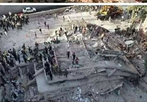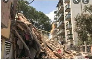 তৃতীয় ছবি: এই ছবিটিও ২০১৭ সালের সেপ্টেম্বর মাসের ভূমিকম্পের ছবি। রাস্তার উপর কোনো এক বিল্ডিংয়ের ভাঙ্গা অংশ পরে আছে ও উদ্ধারকারীরা দাঁড়িয়ে আছে তার উপর।