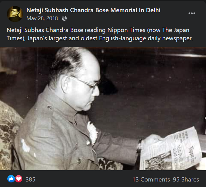টুইটার ছাড়াও আমরা ফেসবুকে দেখি Netaji Subhash Chandra Bose Memorial In Delhi থেকেও এই ছবিটিকে ২০১৮ সালের ২৮শে মে তে শেয়ার করা হয়েছে।