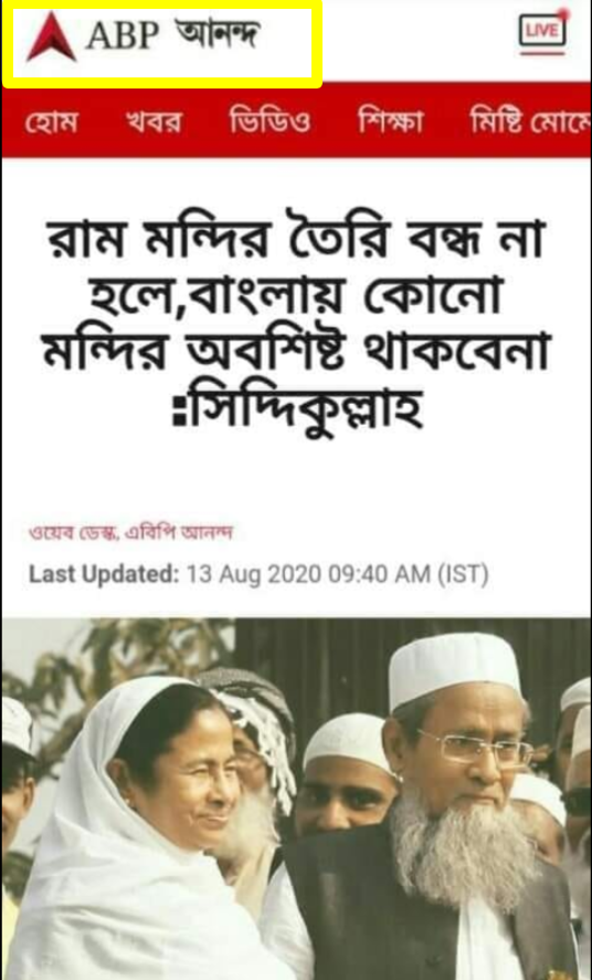 ABP আনন্দের তরফ থেকে ৬ই অগাস্ট সিদ্দিকুল্লাকে নিয়ে যে রিপোর্ট বের পেশ করা হয়েছিল সেখানে কোথাও ভাইরাল মন্তব্যের কোনো উল্লেখ নেই। তাদের রিপোর্ট অনুযায়ী অযোধ্যায় শেষ পর্যন্ত মসজিদই থাকবে, ভূমিপুজো করে ভুল করেছেন প্রধানমন্ত্রী– এই মন্ত্যব করেছেন সিদ্দিকুল্লা।