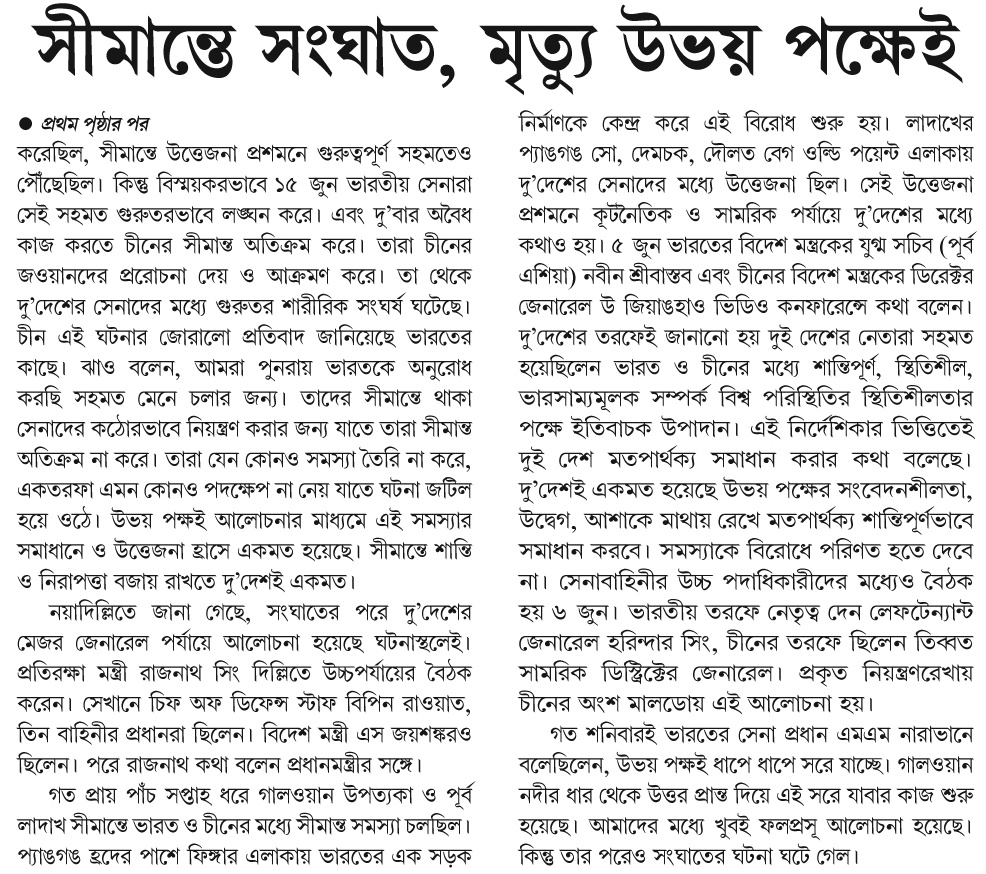 কিন্তু রাম যে খবরের কথা এখানে তুলে ধরেছেন তা পুরোপুরি সত্য নয়। কলকাতায় গণশক্তি প্রকাশিত হয় যা সিপিএমের বহুপুরোনো প্রকাশনা। গণশক্তির ১৬ ০ ১৭ তারিখের অনলাইন এডিশন আমরা খুঁজলে ১৭ঐ জুন আমরা সীমান্তে দুইদেশের মধ্যে উত্তেজন নিয়ে প্রকাশিত খবর পাই। প্রথম ও দ্বিতীয় পাতায় প্রকাশিত খবরের শীর্ষক হলো ‘লাদাখ সীমান্তে সংঘাত, মৃত্যু দুই উভয় পক্ষেই‘ .. প্রকাশিত পুরো খবরটি পড়লে জানা যাবে, রাম মাধব যে অংশের কথাটি বলছেন তা আসলে বেজিংয়ের বিদেশ মন্ত্রকের মুখপাত্র ঝাও লিজিয়ান ।তিনি মন্তব্য করেন যে – দুই দেশের মধ্যে সীমান্ত নিয়ে উত্তেজনা চরমে ছিল, কথা-বার্তার দ্বারা তা কিছুটা স্থিত হলেও ভারতীয় সেনাদের তরফ থেকে সীমা লঙ্ঘনের কান্ড ঘটার পর সংঘর্ষের সূচনা হয়। এই উধৃতিটি তিনি কমিউনিস্ট পার্টির ভারতীয় সেনাদের দায়ী করার কারণ রূপে সাক্ষাৎকারের বলেন , যা সম্পূর্ণ বিভ্রান্তিকর ও অর্ধ সত্য। এই বক্তব্য আসলে চীনের বিদেশ মন্ত্রক ঝাওয়ের।