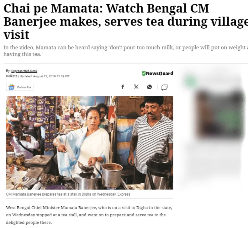 ভাইরাল ভিডিয়োটির রিার্স ইমেজ সার্চ করলে২০১৯ সালের ২২ অগাস্ট The Indian Express ওয়েবসাইটে প্রকাশিত একটি প্রতিবেদনে একই ছবি ব্যবহার হতে দেখা যায়। যার শিরোনাম ছিল- “Chai pe Mamata: Watch Bengal CM Banerjee makes, serves tea during village visit” সেই প্রতিবেদন থেকে জানা যায়, দিঘায় একটি রাস্তায় পাশের চায়ের দোকানে চা বানিয়েছিলেন মুখ্যমন্ত্রী মমতা বন্দ্যোপাধ্যায়।