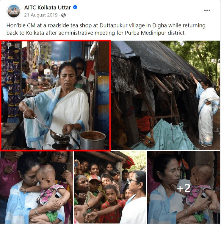 এরপর ওই সময় উত্তর কলকাতা জেলা তৃণমূলের অফিসিয়াল ফেসবুক পেজেও একই ছবি পোস্ট করা হয়েছিল। যা থেকে জানা যায় যে, পূর্ব মেদিনীপুরে প্রশাসনিক সভা করে কলকাতায় ফেরার পথে, দত্তপুকুর গ্রামের একটি রাস্তার ধারের চায়ের দোকানে চা বানিয়েছিলেন মমতা বন্দ্যোপাধ্যায়।