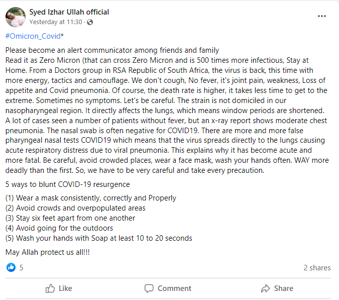 Another widely shared post claims that the National Health Service (NHS), the United Kingdom’s government health department, is offering free COVID-19 tests specifically to detect the Omicron variant, as the current testing method, the RT PCR, does not detect the new strain.