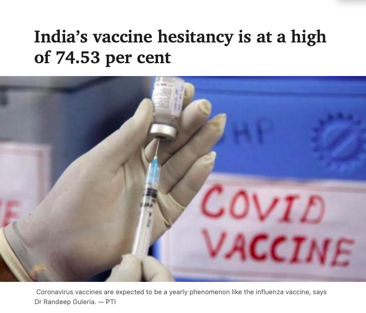The Deccan Chronicle has recently reported that vaccine hesitancy is as high as 74.53%.
