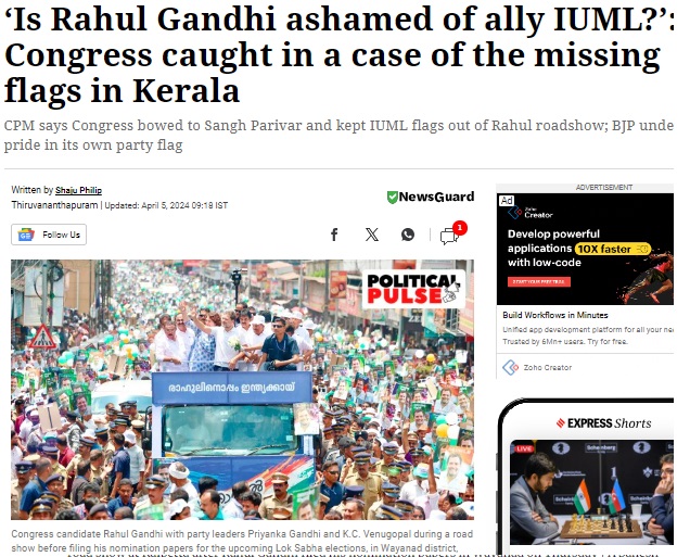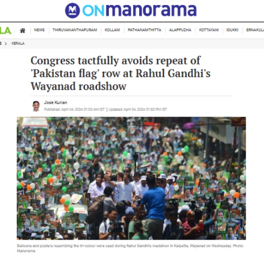 “[Kerala CM] Vijayan contended the flags were absent as during the last LS polls in 2019, the BJP had taken a dig at the Congress over IUML flags. At the height of the election campaign in 2019, senior BJP leader Amit Shah had criticised Gandhi for contesting from the constituency in Kerala, and remarked that during a procession in the area, it was difficult to discern whether it was India or Pakistan, alluding to the presence of IUML’s green flags during the Congress leader’s roadshow,” read the Print report, dated April 4, 2024. Similar reports can be seen here and here, which further confirms that the viral photo is not from the ongoing election campaign by the Congress.