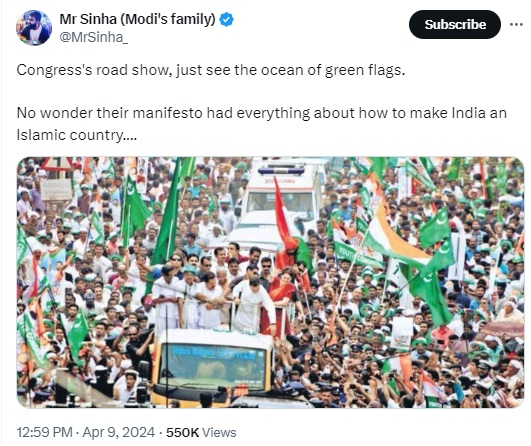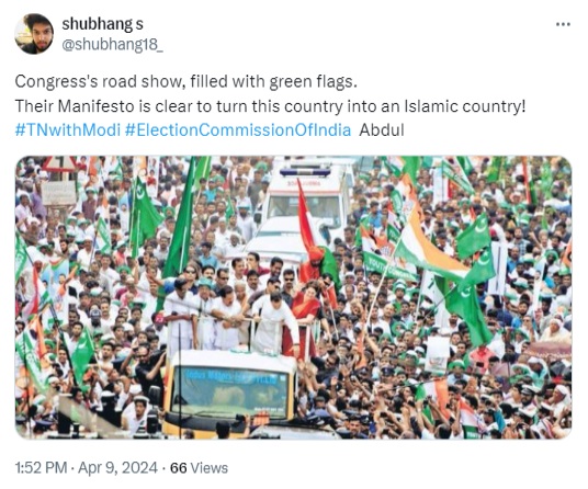 Several Islamic flags waved during Congress’s roadshow ahead of the 2024 Lok Sabha polls.