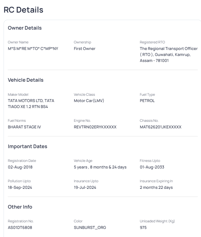 The licence plate numbers of the second and the third cars are ‘AS01JC4711’ and “AS01EP3464”. Registration dates are respectively February 14, 2018 and December 1, 2020.