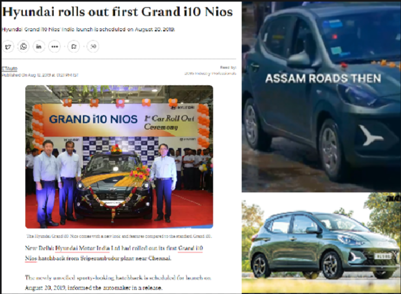 At the 5-second mark of the video, a Hyundai Grand i10 Nios car is clearly visible. Notably, this model was initially introduced in the Indian market in 2019.