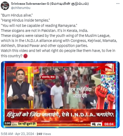 Provocative anti-Hindu slogans raised by members of the youth wing of Congress ally IUML during a rally in Kerala, ahead of the Lok Sabha elections.