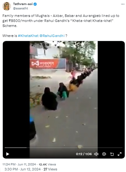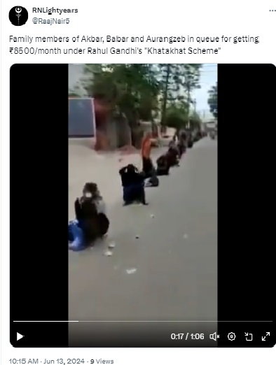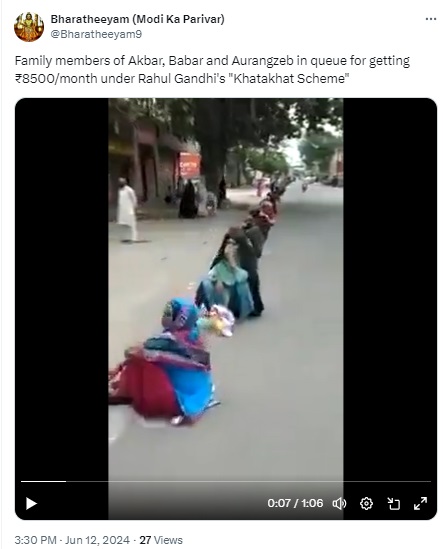 Several social media users are circulating a video, mockingly stating that Muslim women are queuing up to receive ₹8,500 per month, promised under Rahul Gandhi’s “khatakhat scheme”. The archived version of the tweet can be seen here.