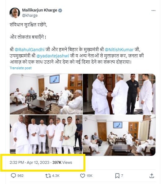 Congress Chief Mallikarjun Kharge had also shared photographs from the meeting on his official X account on April 12, 2023. The same can be seen below.