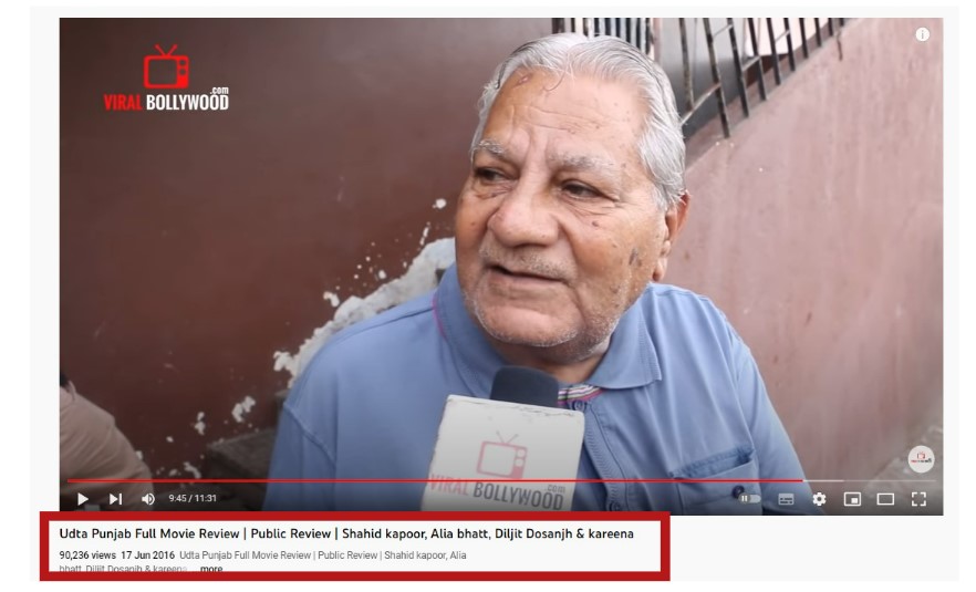 The original video was uploaded by the channel on June 17, 2016, titled ‘Udta Punjab Full Movie Review | Public Review | Shahid kapoor, Alia bhatt, Diljit Dosanjh & kareena.’ The viral clip claiming to show “Honest Brahmastra review” can be seen at 9:40 minutes in the video.