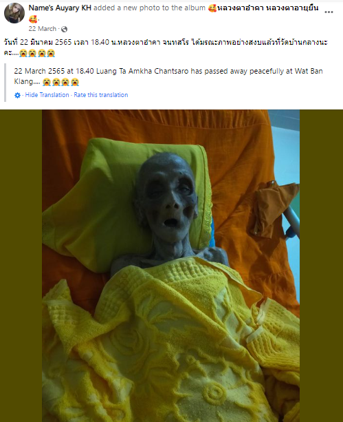 Upon further investigation Newschecker found a Facebook post by the same user which informed that Luang Ta Yai had passed away on 22nd March, 2022 peacefully.