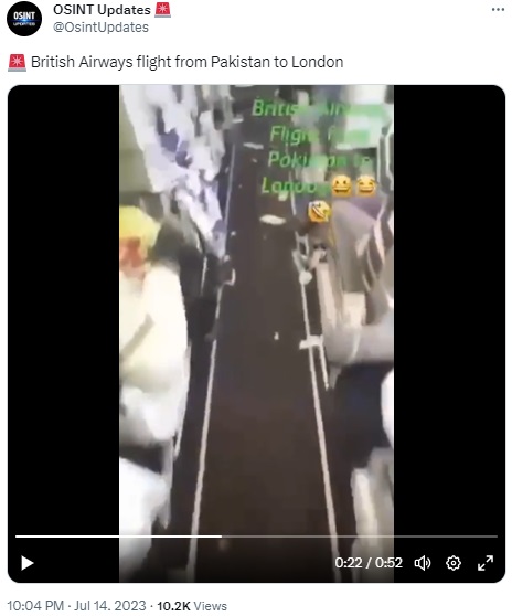A video taken aboard a Saudi Airlines flight from Jeddah to Addis Ababa in Ethiopia in 2016 falsely claimed to be of a British Airways plane from Pakistan to London.