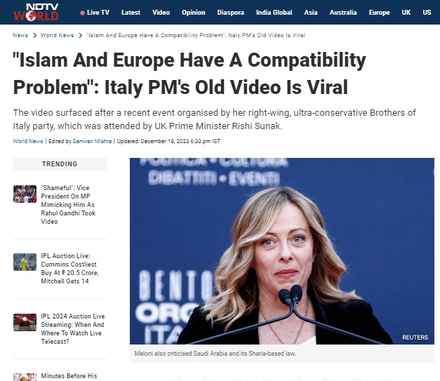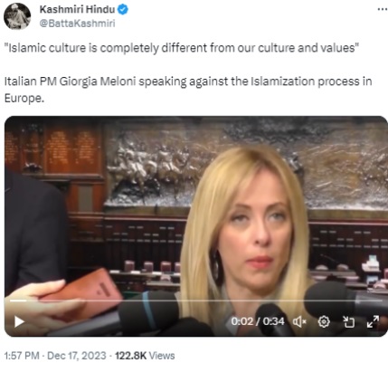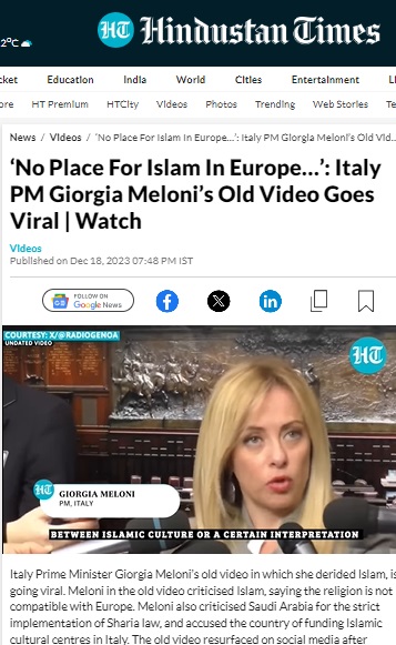 Italian Prime Minister Giorgia Meloni’s old statement on Islam being “incompatible” with Italian culture goes viral.