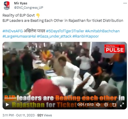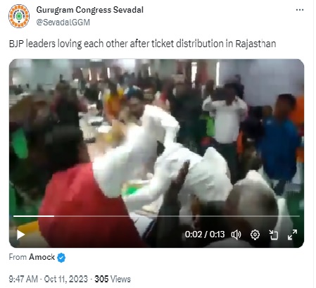 Several social media users are circulating a video, claiming that it shows BJP leaders thrashing each other with shoes over the distribution of tickets for the upcoming Rajasthan Assembly elections. The elections to the 200-member assembly will be held on November 25 in a single phase and results will be out on December 3.