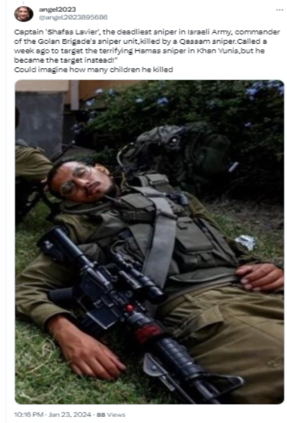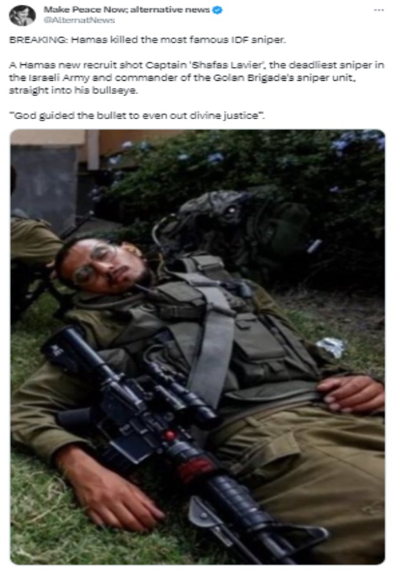 Hamas fighter kills Shafas Lavier, the “deadliest sniper in the Israeli Army”.