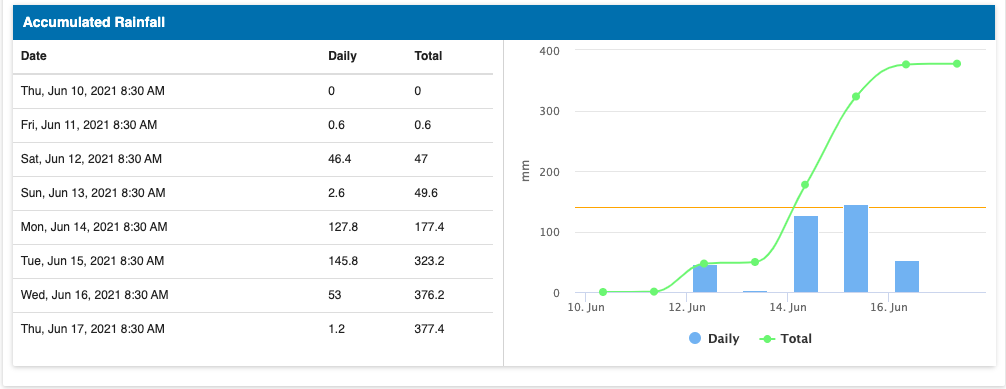 According to Nepal’s Weather Forecasting Division, Department of Hydrology and Meteorology, a low-pressure system remained over central Nepal during June-13-16, causing record rainfall of up to 214 millimeters on June 15 in the western Syangja district of Nepal.