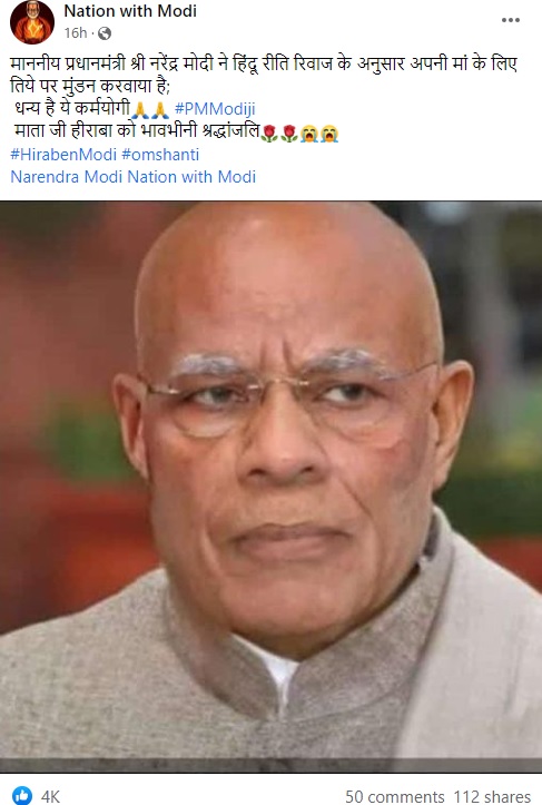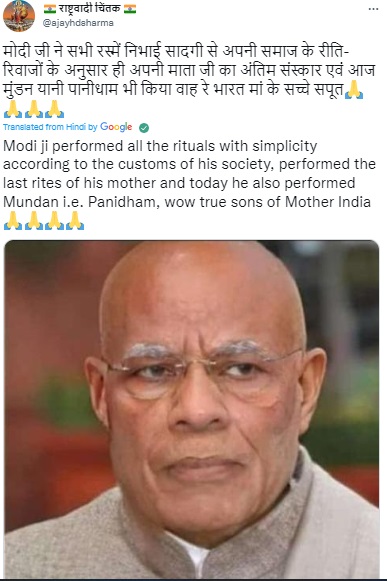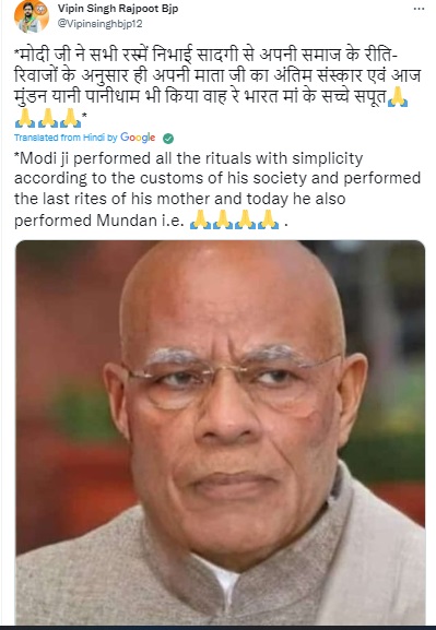 An image of a clean-shaven and bald Prime Minister Narendra Modi has gone viral with social media users claiming that the PM tonsured his head as per Hindu rituals following the death of his mother, Heeraben, aged 99, on December 30, 2022.