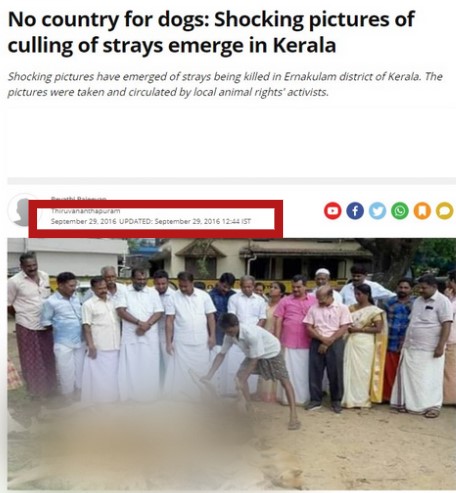 2016 reports by Hindustan Times and The News Minute also carried visuals from the above mentioned incident of culling of dogs in Kerala.
