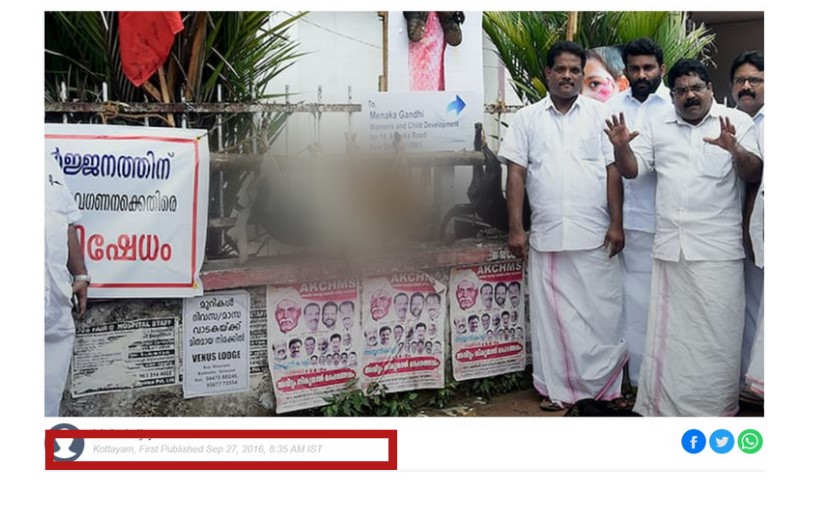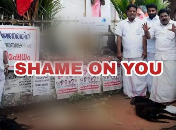 The image featured in a 2016 report by the News Minute, titled ‘Kerala politicians beat street dogs to death, hang them on a pole and take out a parade.’ Elaborating on the gruesome incident, the report stated, “The cadres of the youth wing of the Kerala Congress Mani group beat the dogs to death, tied a few to a pole and paraded them in Kottayam town.They were protesting against the recurrent attacks by stray dogs and Union Minister Maneka Gandhi’s approach towards the stray dog problem in Kerala. The Minister has many a time come down heavily on the state for its poor handling of the menace. “
