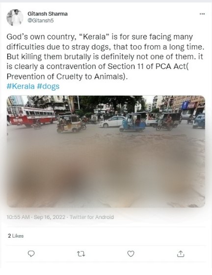 These images are related to the incident that took place in 2016 in Kerala. The News Minute report stated, “A day after a 90-year old man died after being attacked by a group of stray dogs at his residence at Varkala in Thiruvananthapuram, locals went on a reckless killing spree by beating 27 strays to death.”