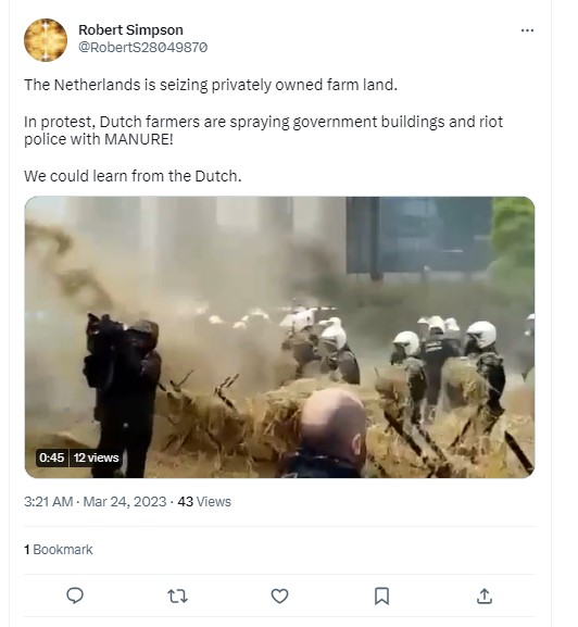 The video purportedly showing protest by Dutch farmers is doing the rounds on Twitter and Facebook.