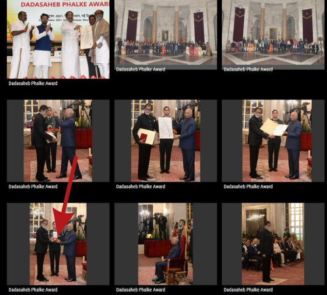 Taking a clue, we looked up “Dadasaheb Phalke IFF” on Google which yielded the official website of the film festival. The website featured a series of photographs of people associated with the film industry with the same trophy as seen in images posted by Agnihotri.