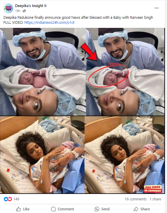 Hence, viral photographs showing Deepika Padukone and Ranveer Singh with their newborn are manipulated.