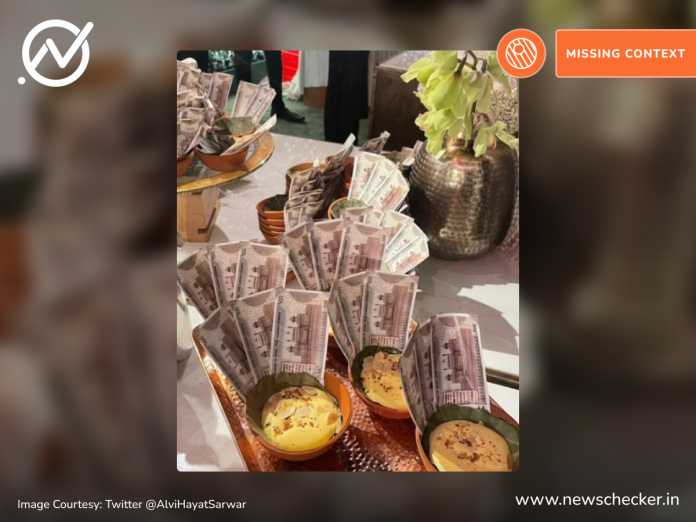 As visuals from the grand inauguration of the NMACC in Mumbai left netizens gushing at the sheer opulence of the star-studded event, the image of a plate of dessert decorated with currency notes is being widely shared online. While many chuckled at the ‘extravaganza’, many others believed it to be real. Newschecker found that the viral photograph actually shows fake ₹500 notes added to a dish as a part of culinary presentation, and not actual money. Read more here.
