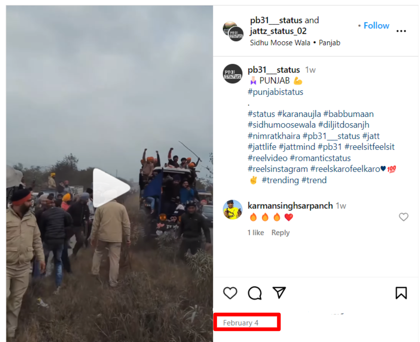 A reverse image search on the keyframes of the viral footage yielded an Instagram post by @pb31___status, dated February 4, 2024. The post carried a slightly different version of the viral video, indicating that the footage is at least a week old.