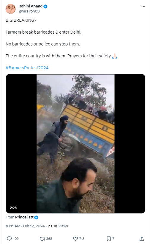 In the wake of farmers’ call for a protest march to Delhi on Tuesday, a video allegedly showing tractors carrying agitators breaking through police barricades and entering the national capital is being widely shared on social media platforms.