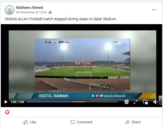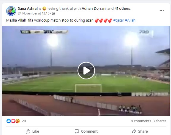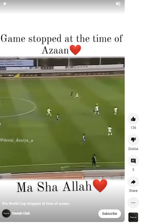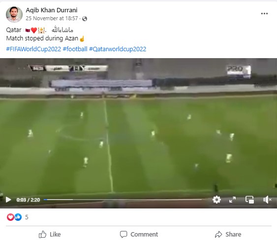 We could thus conclude that the viral video showing a football match being halted for Azaan is neither from the ongoing FIFA World Cup in Qatar, nor does it show any recent incident. The video showcases a four-year-old incident from Saudi Arabia.