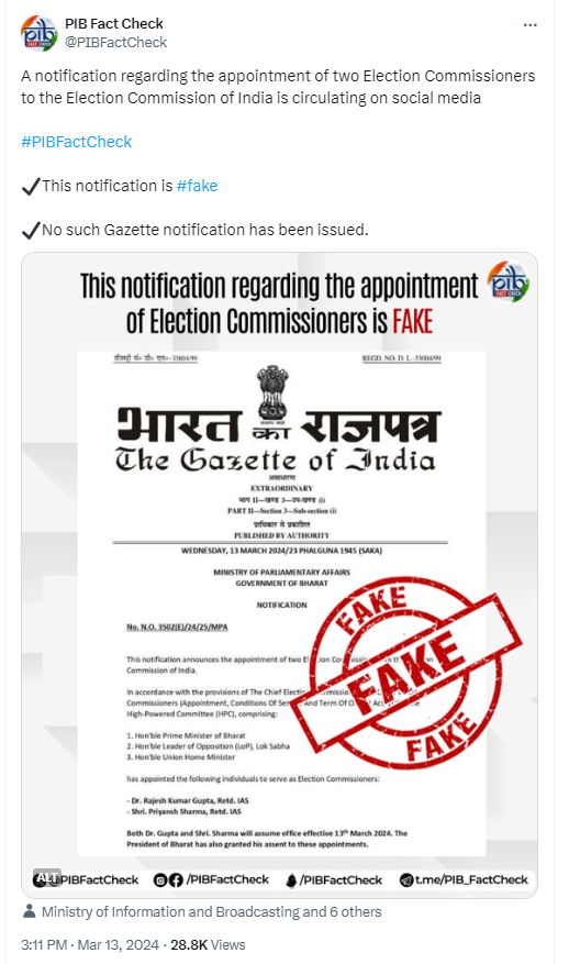 Viral Gazette Notification On Appointment Of Election Commissioners Is Fake
