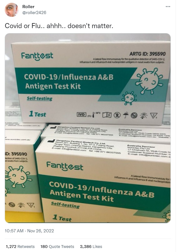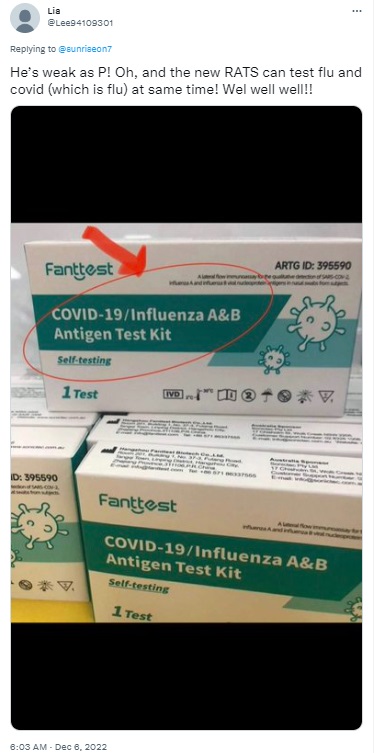 The product description in Amazon Australia mentioned that it was a three-in-one combination testing kit, indicating that it was not a single result that was used to detect both flu and COVID.