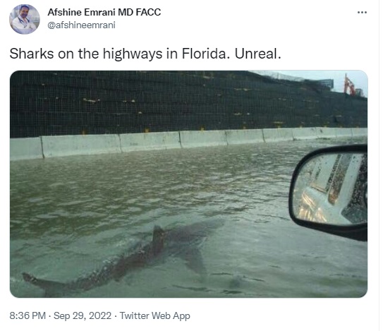 Amid the destruction that saw seawater inundating entire neighbourhoods, several social media users are tweeting a photograph of what appears to be a shark swimming in a flooded street in Florida.
